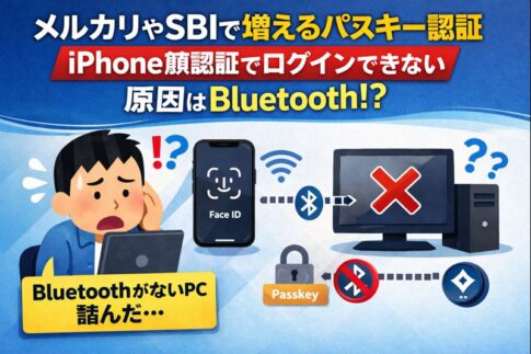 最近、メルカリやSBI証券などで「パスキー認証」を求められる場面が増えてきました。 一方で、実際には 「スマホなら進むのに、デスクトップPCだと詰まる」 「iPhoneの顔認証でいけると思ったのに進まない」 という声も少...