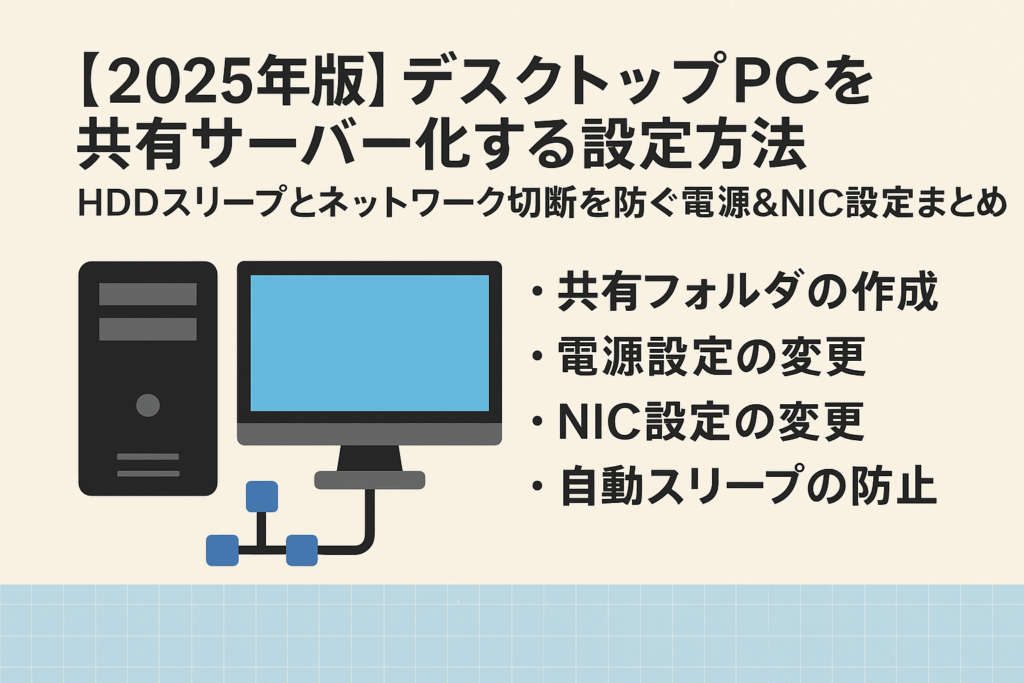 自宅や小規模オフィスで、NASの代わりに余っているデスクトップPCを共有ファイルサーバーとして活用したい方へ。この記事では、以下の設定を完全解説します。