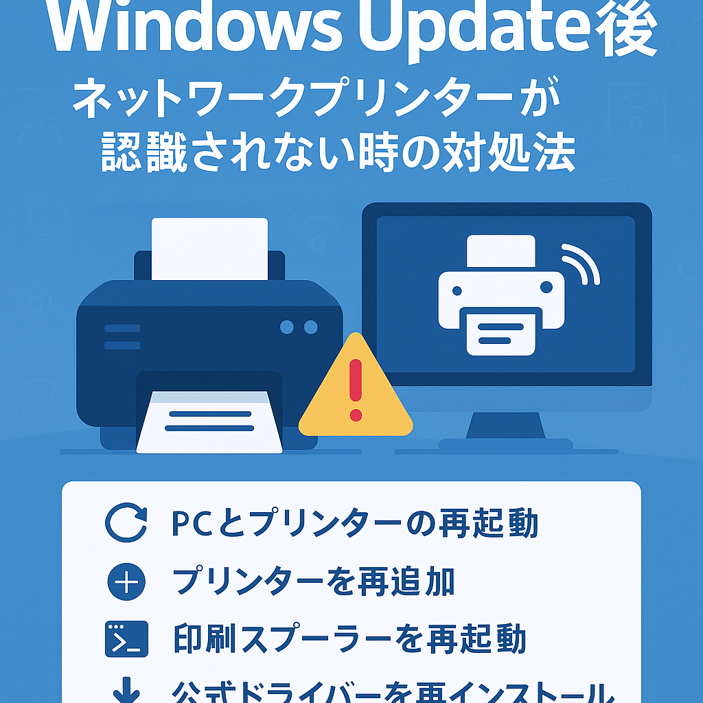 Windows Updateのあと、突然ネットワークプリンターが使えなくなる—— このトラブルは Windows 10 / 11 共通で非常に多く、2024〜2025年の大型更新以降さらに増加しています。