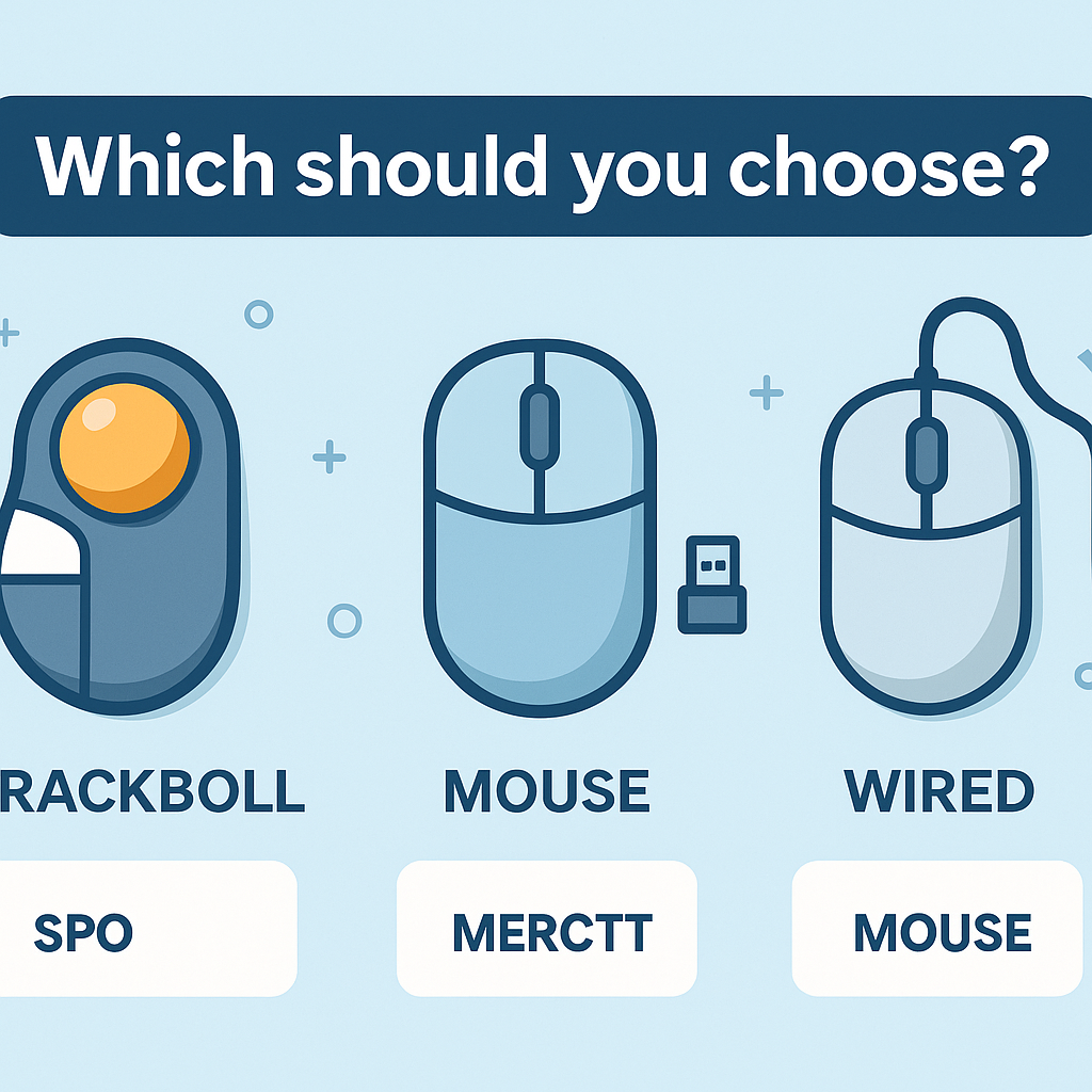 この記事では、トラックボールマウス・通常のマウス(無線/有線)・有線マウス の特徴とメリット・デメリットをわかりやすく比較します。