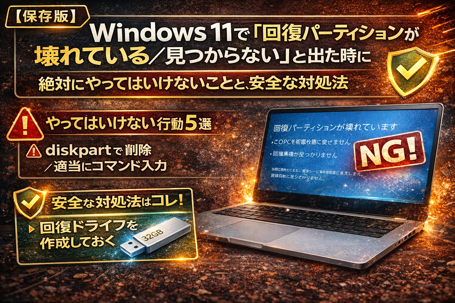 ❌ 1. よく分からずに回復パーティションを「削除」する