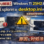 Windows 11 25H2 における黒画面・壁紙リセット問題は、 KB5074109 が複数領域に影響を与えた複合不具合と考えられます。