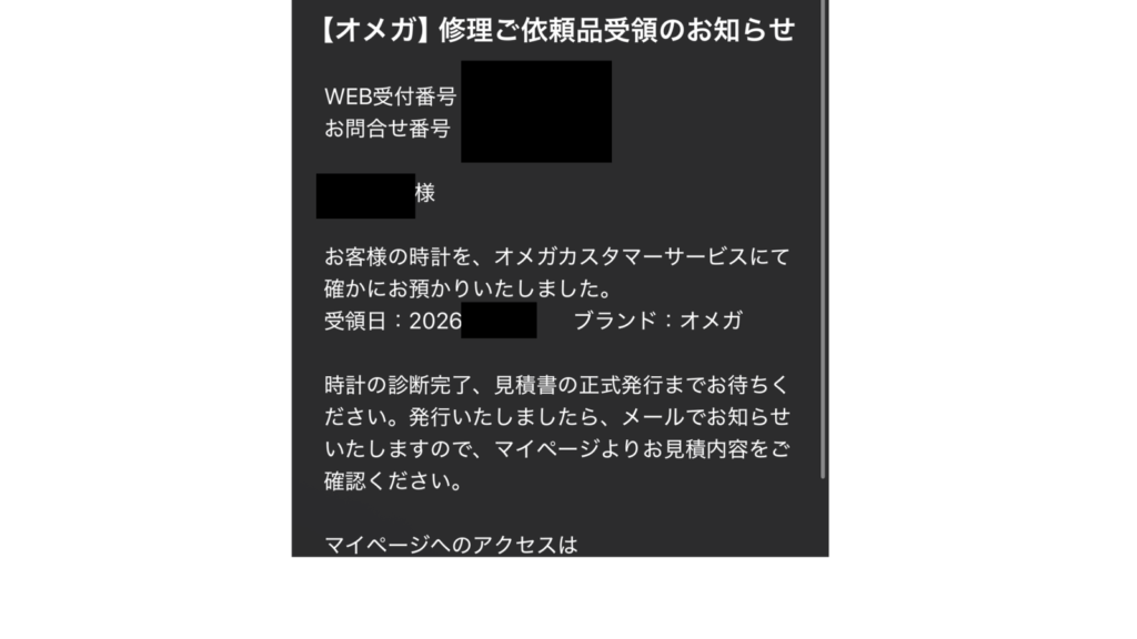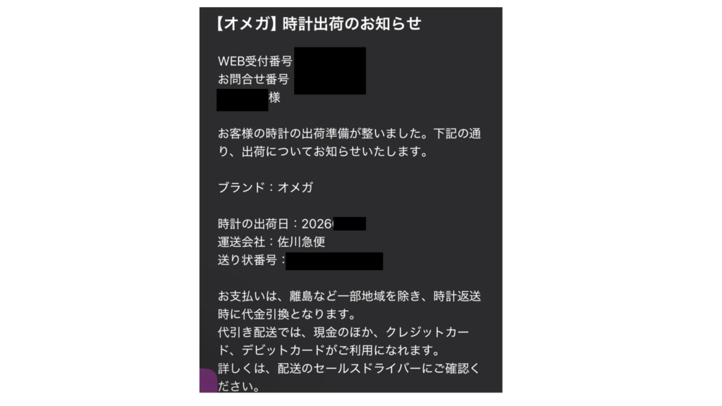 時計到着後は、段階ごとにメールで連絡が来ます。