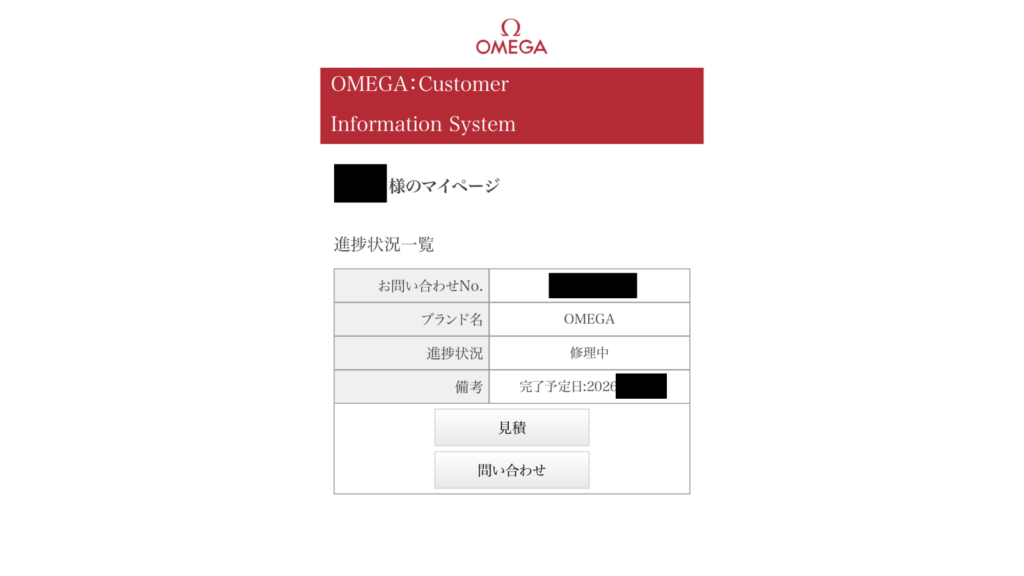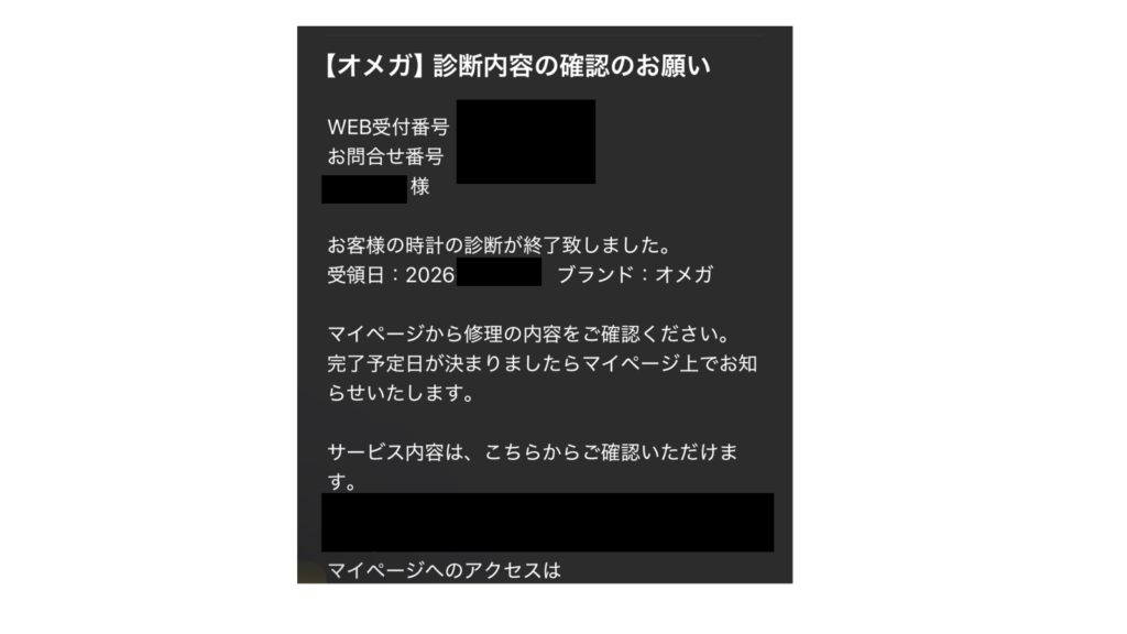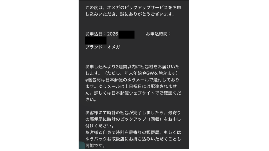 今回は、オメガの**ピックアップサービス(宅配修理)**を利用しています。