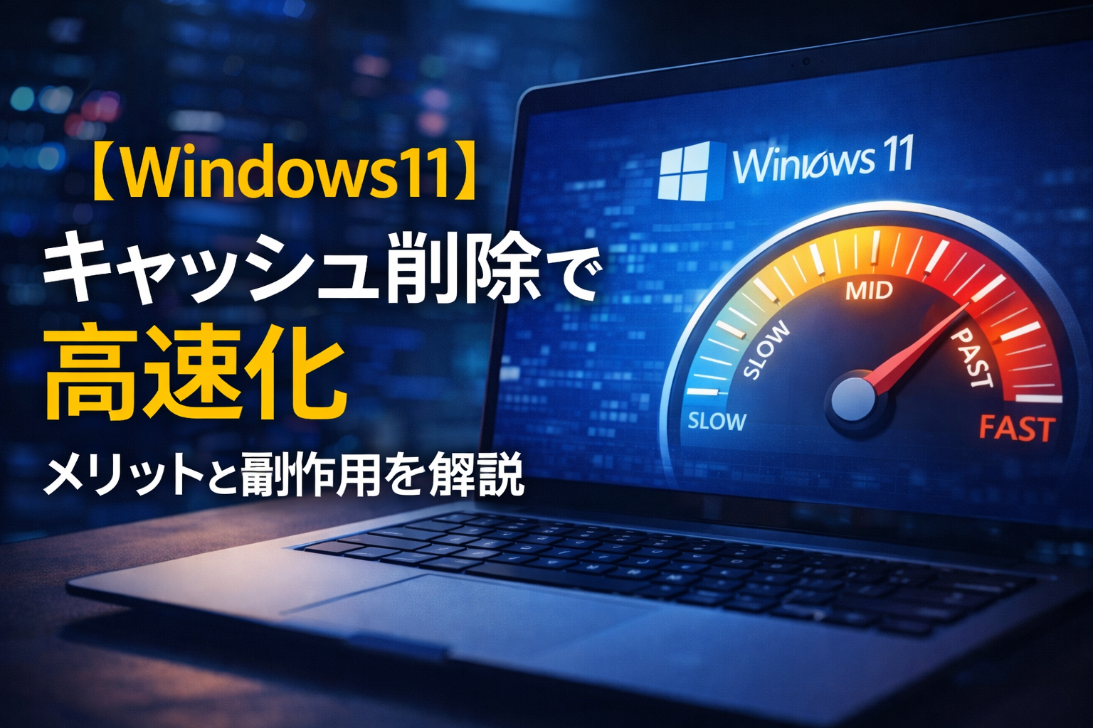 Windows11の動作が重く感じる場合、 キャッシュファイルや一時ファイルの削除 によって改善することがあります。