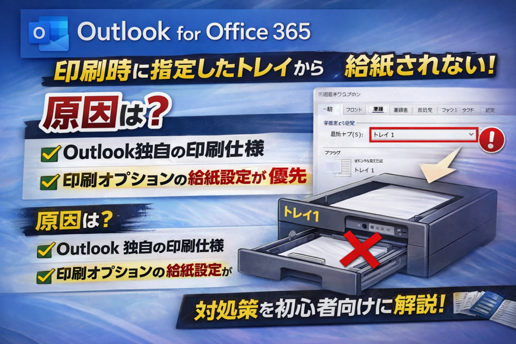 Outlook for Microsoft 365 のデスクトップ版でメール印刷時に指定したトレイから給紙されない現象は、 現場で実際によく遭遇するテーマです。 そして、この問題は多くの場合、プリンタードライバーより先に Outlook 側の印刷設定 を見ることで解決できます。